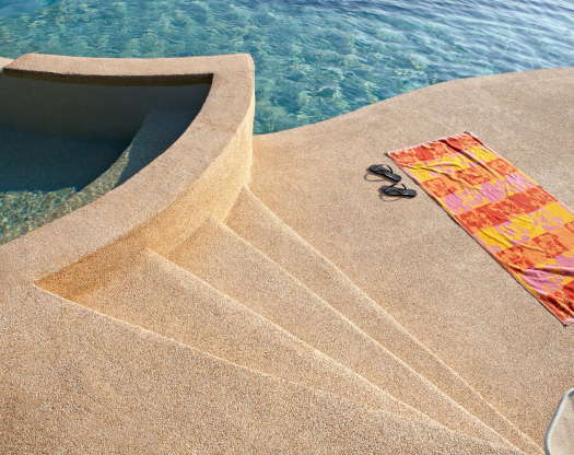 Utilizzando ghiaie e ciottoli selezionati, abbiamo messo a punto il sistema SassoItalia per rivestimenti decorativi interni ed esterni di piscine: la base è cementizia, impastata con una miscela fibrorinforzata a base di inerti silicei, particelle coloranti, additivi superfluidificanti, agenti antiritiro e sostanze anti-efflorescenze, nelle debite proporzioni e ghiaia selezionate appunto.